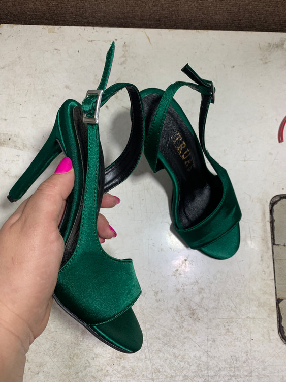 کفش زنانه جنس رویه ساتن سبز مجلسی نه سانت