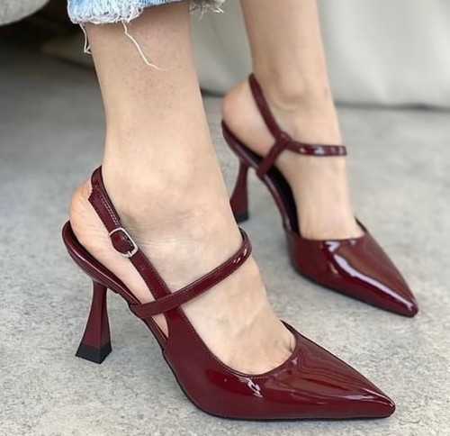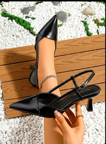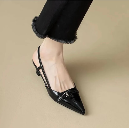 کفش زنانه ورنی نوک تیز عروسکی پشت باز پاشنه ۷سانتتماس بگیرید
